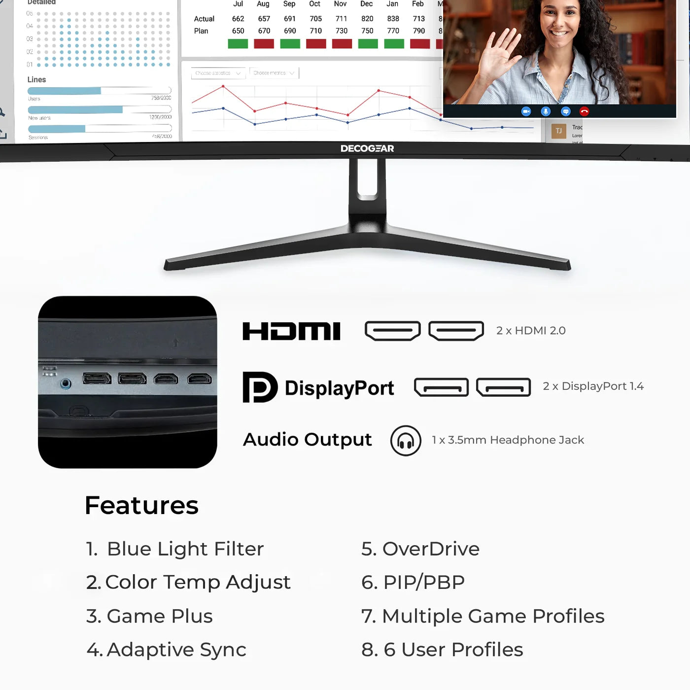 The Deco Gear 34” Business Monitor transforms the way you work, combining high-end visuals with ergonomic comfort. Whether you're managing multiple windows, refining creative projects, or enjoying after-hours entertainment, this monitor delivers the perfect balance of performance and versatility.